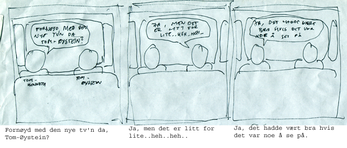 Velkommen til Tom-Øystein og Tom-Kenneths "Whacky" world!! Her finner du tegneserie striper som Tom-Øystein og Tom-Kenneth har tegnet og skrevet!!!